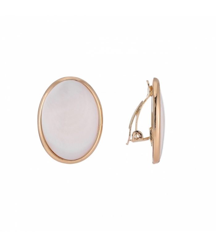 Witte ovale oorclips met parelmoer inleg in een goudkleurige zetting.