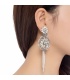Zilverkleurige oorclips met een witte stoffen bloem, kwast en strengen