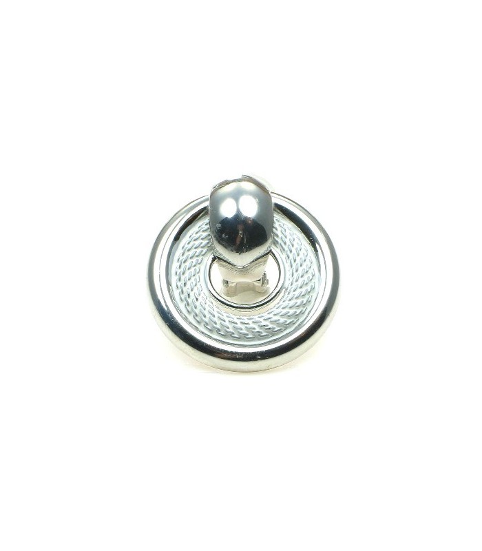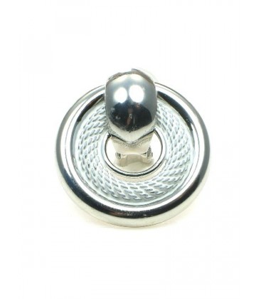 Zilverkleurige ronde oorclips met witte rand. De achterzijde van de oorbel is zilverkleurig. Diameter van de clipoorbel is 2,5 cm.