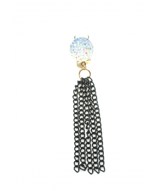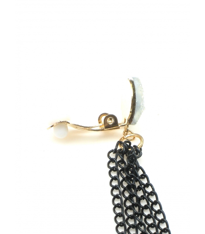 Witte langwerpige oorclips met 5 zwarte jasseron strengen.