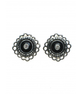 Oorclips met bloemvorm en zwarte rubber franjes. De lengte van deze oorclip is circa 10 cm. Voor oren zonder gaatjes. De klemoorbellen zijn nikkelvrij. De oorclips zijn voorzien van zachte rubbertjes.