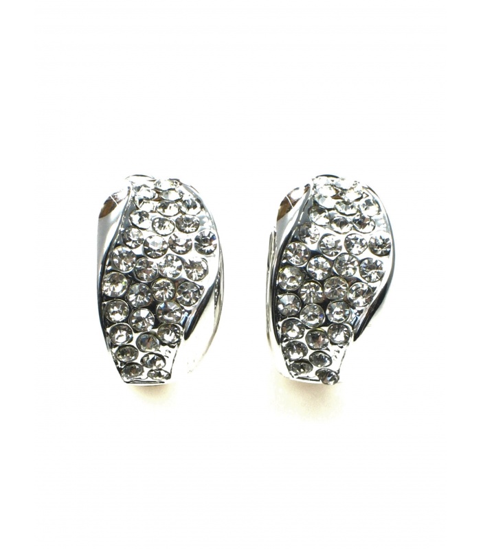 Zilverkleurige oorclips met heldere strass steentjes met een gladde rand