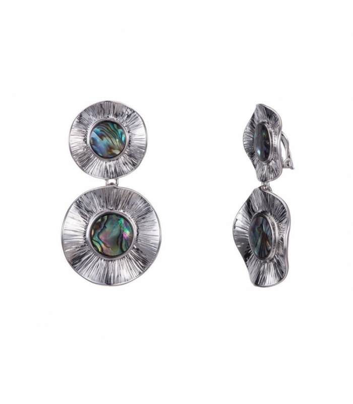 Mooie zilverkleurige oorclip met ronde hanger en parelmoer inleg