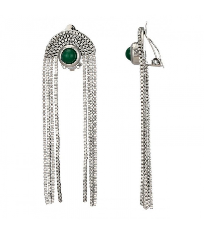 Wil je een statement maken zonder gaatjes? Deze zilverkleurige oorclip met donkergroene steen en lange schakelkettingen geeft elke look een moderne update. Ideaal voor wie houdt van opvallende fashion oorbellen met een luxe uitstraling.