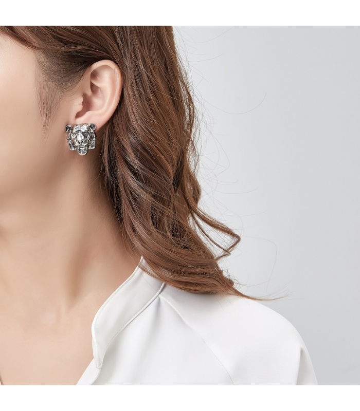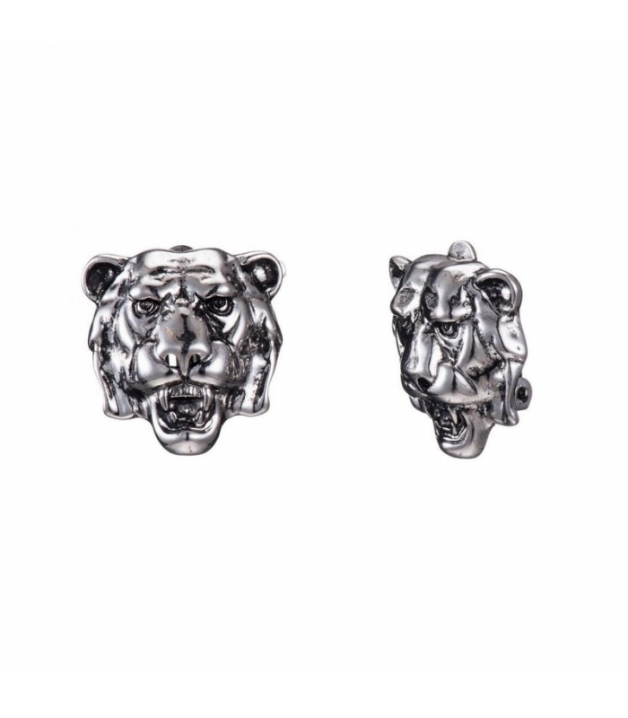 Oorclips in de vorm van een zilverkleurige leeuwenkop.