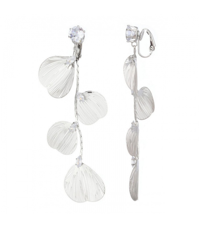 Deze zilverkleurige oorclips met bladmotief en heldere kristallen steentjes voegen een vleugje natuur en elegantie toe aan je look. Het verfijnde ontwerp combineert de sierlijke vormen van bladeren met de sprankeling van kristallen, perfect voor zowel dagelijkse als speciale gelegenheden.