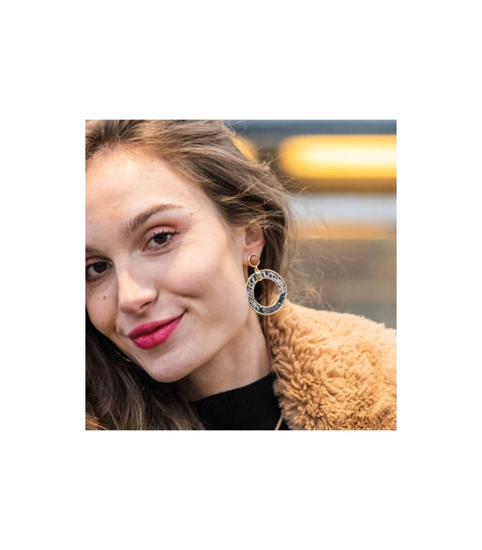 De open cirkelvorm is krachtig, de print gedurfd, maar het geheel blijft licht en draagbaar. Perfect voor wie wil opvallen zonder te overdrijven. Geen gaatjes? Geen probleem. Deze oorclips zitten stevig en comfortabel, klaar om jouw outfit kracht bij te zetten van kantoor tot cocktailbar.