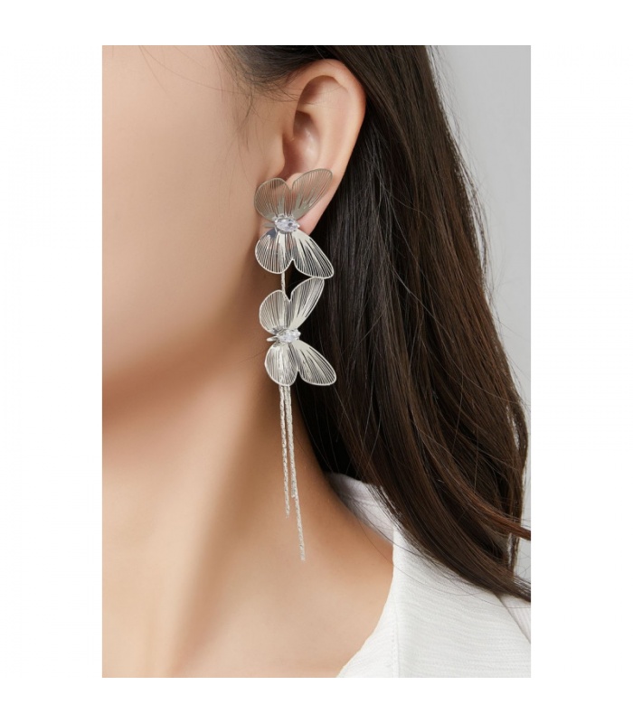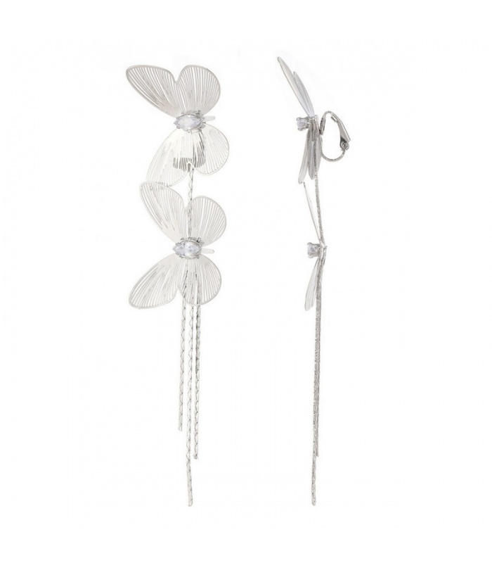 Deze zilverkleurige oorclips combineren elegantie met speelsheid. Het verfijnde vlindermotief, versierd met een helder kristallen steentje, voegt een sprankelende touch toe aan elke outfit. Ideaal voor zowel dagelijkse draag als speciale gelegenheden.