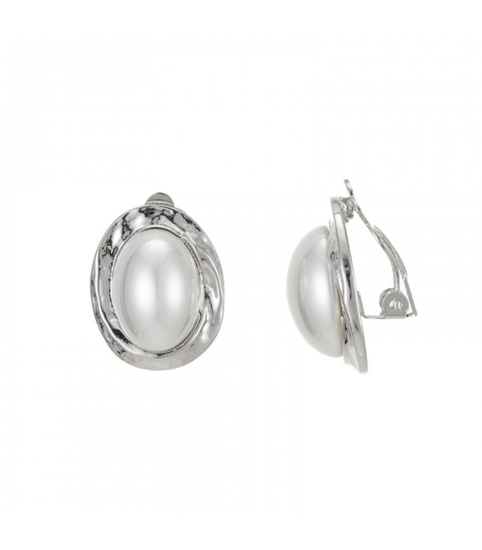 Ovale oorclips met halve parel in zilverkleur zetting van Belle MIss.