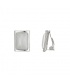 Rechthoekige oorclips met iriserende inleg in zilverkleurige zetting.