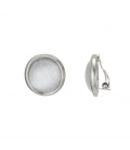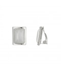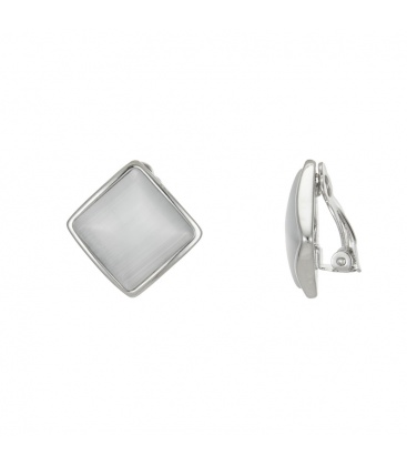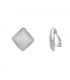 Vierkante oorclips met iriserende inleg in zilverkleurige zetting.