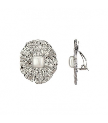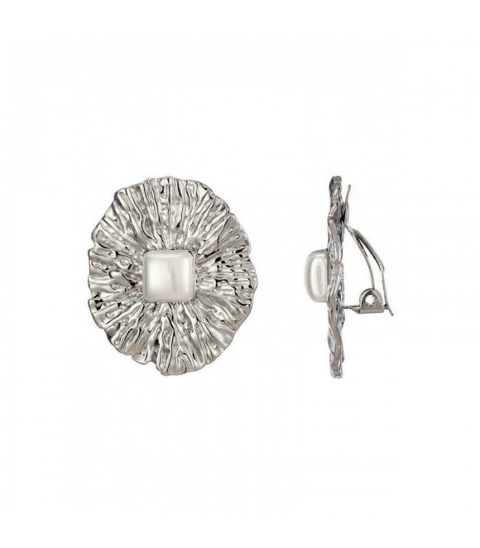 Deze stijlvolle oorclips combineren een zilverkleurige, bewerkte afwerking met een vierkante witte parel, wat zorgt voor een tijdloze en elegante uitstraling. Ze zijn ideaal voor zowel formele gelegenheden als een chique toevoeging aan uw dagelijkse look.