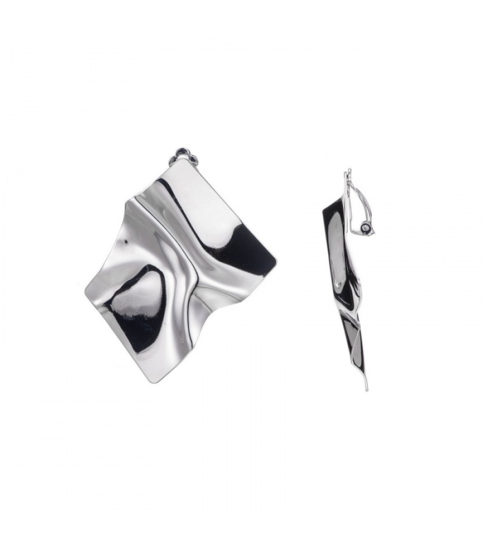 Zilverkleurige grote oorclips met een golvend patroon.