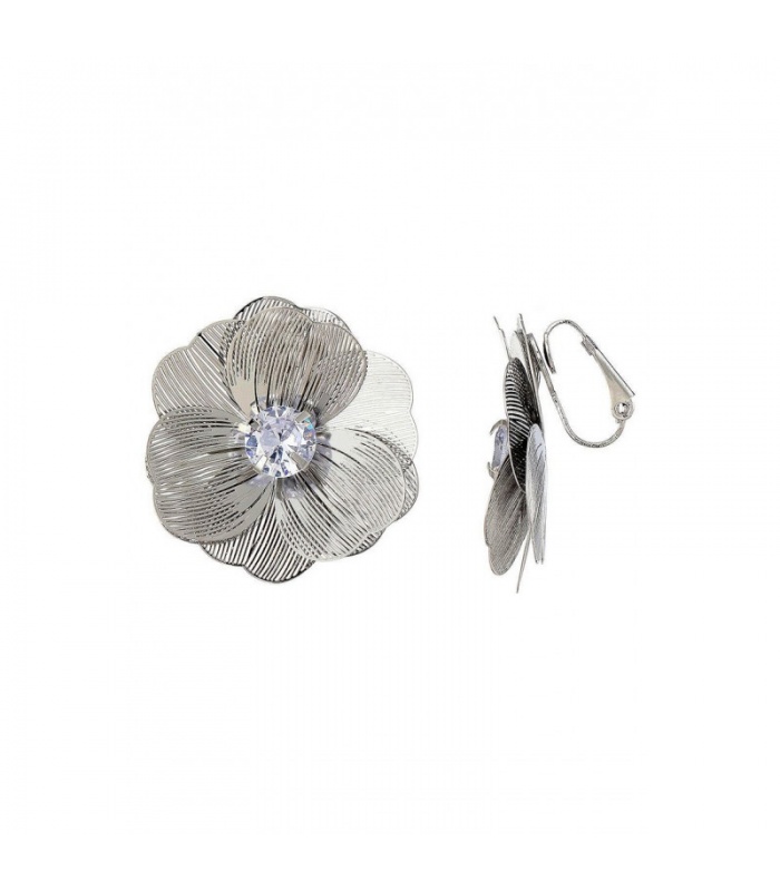 Deze zilverkleurige oorclips combineren een sierlijk bloemmotief met een fonkelend helder glas steentje, wat zorgt voor een verfijnde en tijdloze uitstraling. De hoogwaardige afwerking maakt ze geschikt voor zowel dagelijkse als feestelijke gelegenheden.