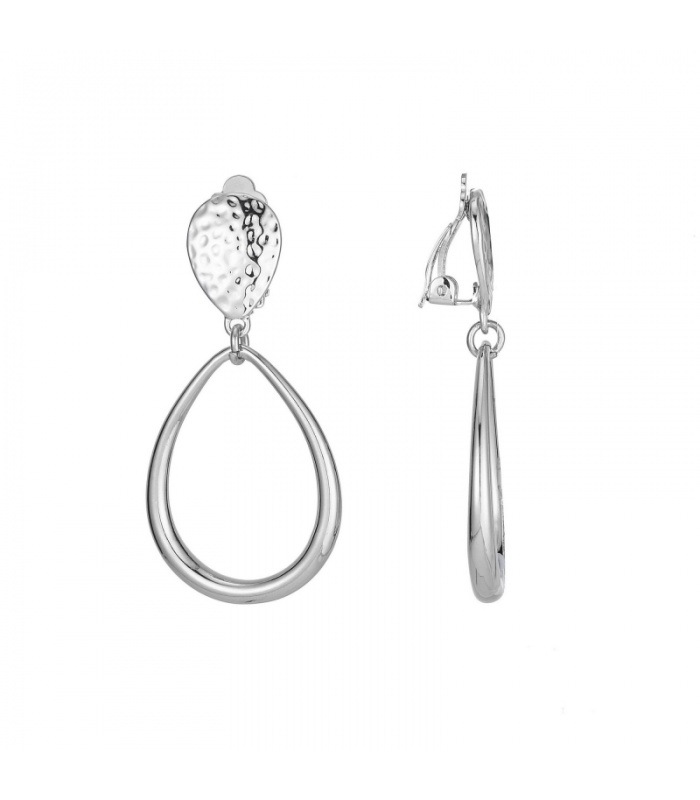 Zilverkleurige oorclips met een gladde ovale hanger en een bewerkt oorstukje