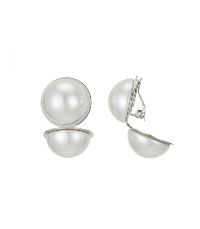 Oorclips met twee halve parels in zilverkleurige zetting van Belle Miss.