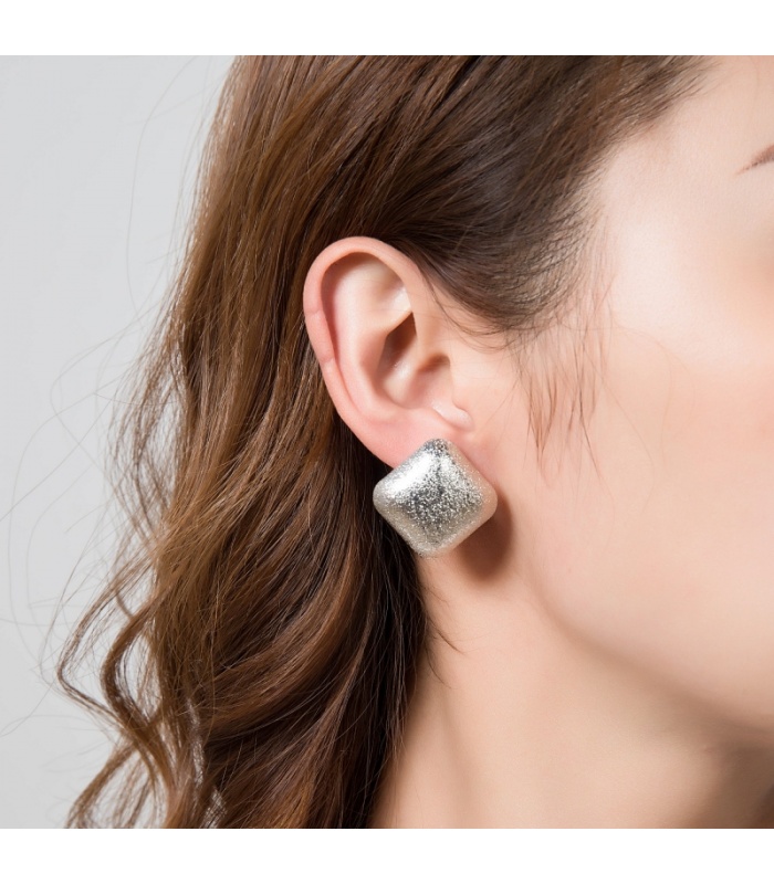 Zilverkleurige vierkante gematteerde oorclips van Belle Miss.