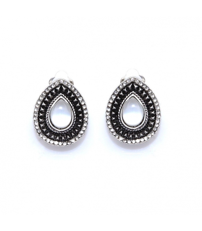 Wil je een klassieke look met een edgy twist? Deze oorclips combineren een parelmoer druppelvorm met een opvallend zwart reliëf en fonkelende steentjes. Het resultaat: een eyecatcher die moeiteloos past bij zowel een avondjurk als een boho-outfit.