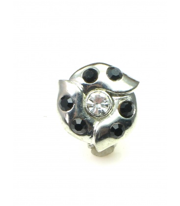 Ronde metalen oorclips met zwarte en heldere strass