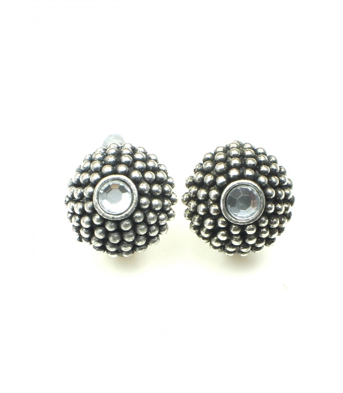Ronde zilverkleurige metalen oorclips met strass steent.