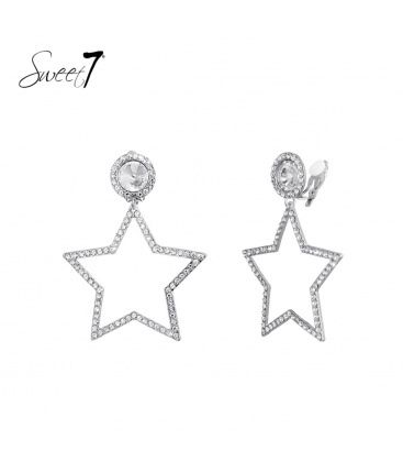 Zilverkleurige oorclips in de vorm van een ster en stras steentjes