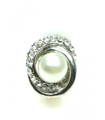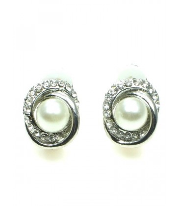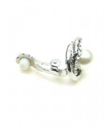 Zilverkleurige clipoorbellen met strassrand en halve kunstparel. De achterzijde van de oorclips is zilverkleurig. De lengte van de oorclip is 1,2 cm.