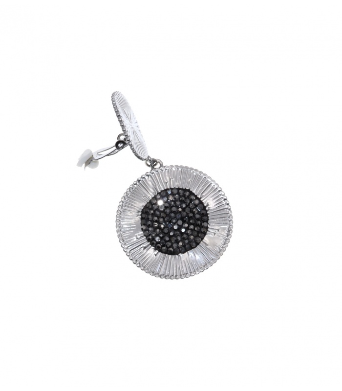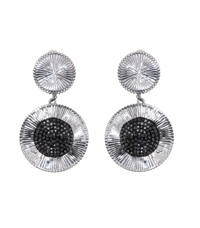 Zilverkleurige oorclips met grijze glas steentjes in de hanger