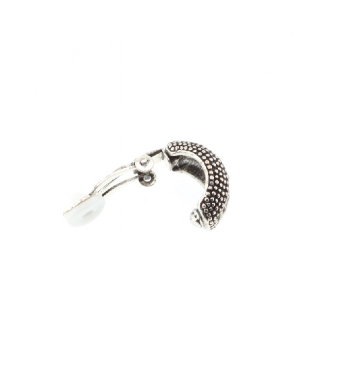 Zilverkleurige oorclips met grijze strass steentjes rand. Lengte van de clip oorbel is 1,7 cm.