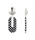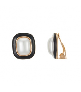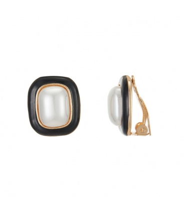 Rechthoekige oorclips met zwarte rand en witte kunstparel inleg