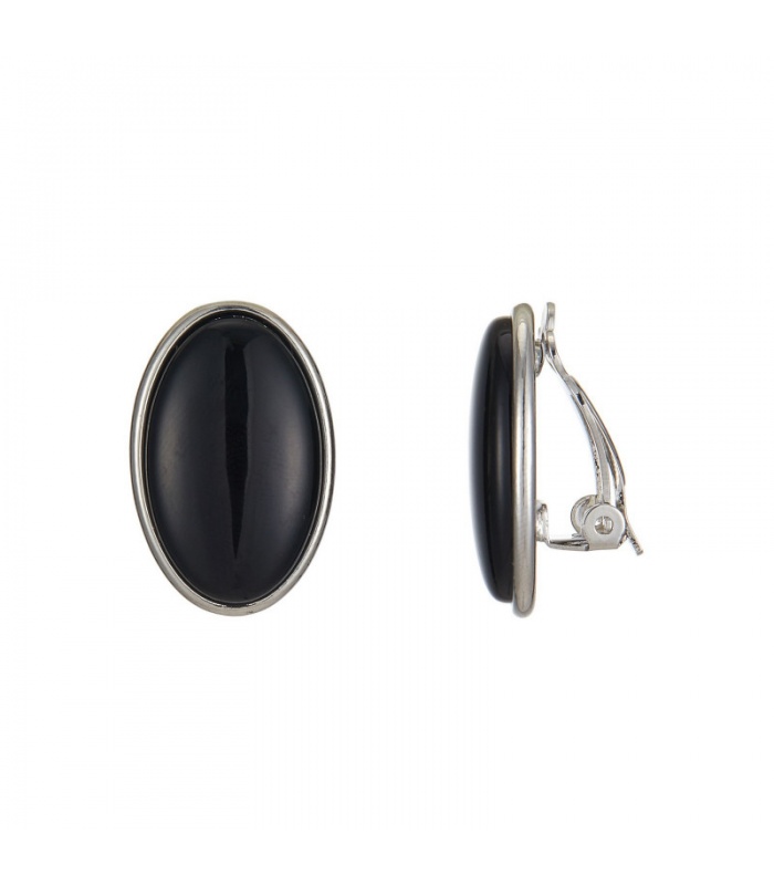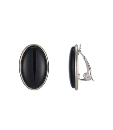 Zwarte getinte ovale oorclips met een zilverkleurige rand
