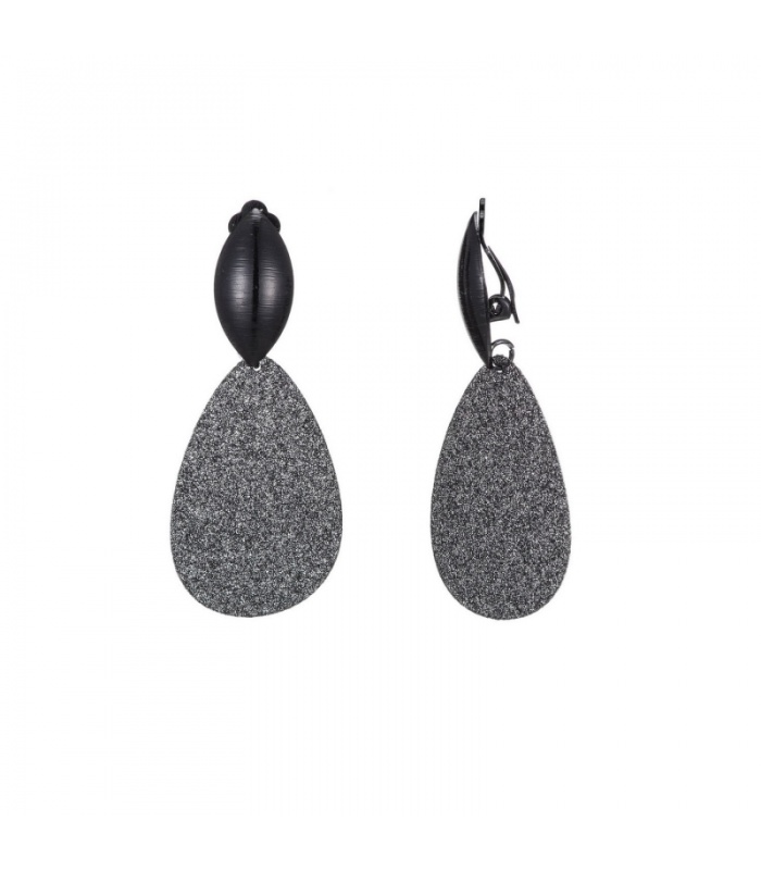 Zwarte oorclips met dunne glinsterende ovale hanger