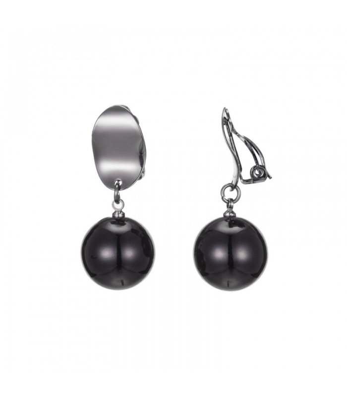 Zwarte oorclips met gun black kleur clip en zwarte bolvormige hanger.