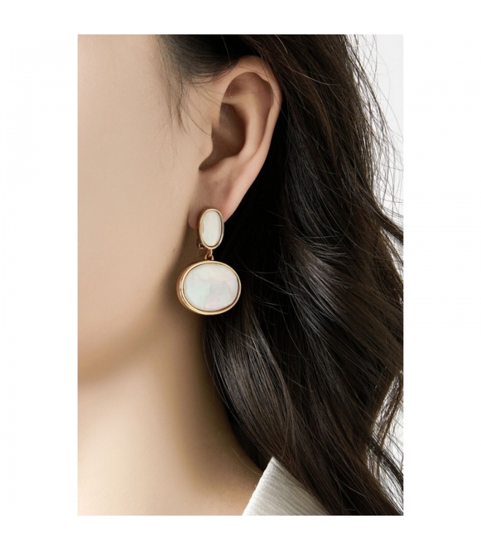 Deze oorclips combineren de tijdloze elegantie van parelmoer met een verfijnde goudkleurige omlijsting. Het parelmoer straalt een subtiele glans uit die bij elke beweging opvalt, terwijl de gouden accenten een luxe touch toevoegen. Deze oorbellen zijn perfect voor zowel dagelijkse outfits als speciale gelegenheden.