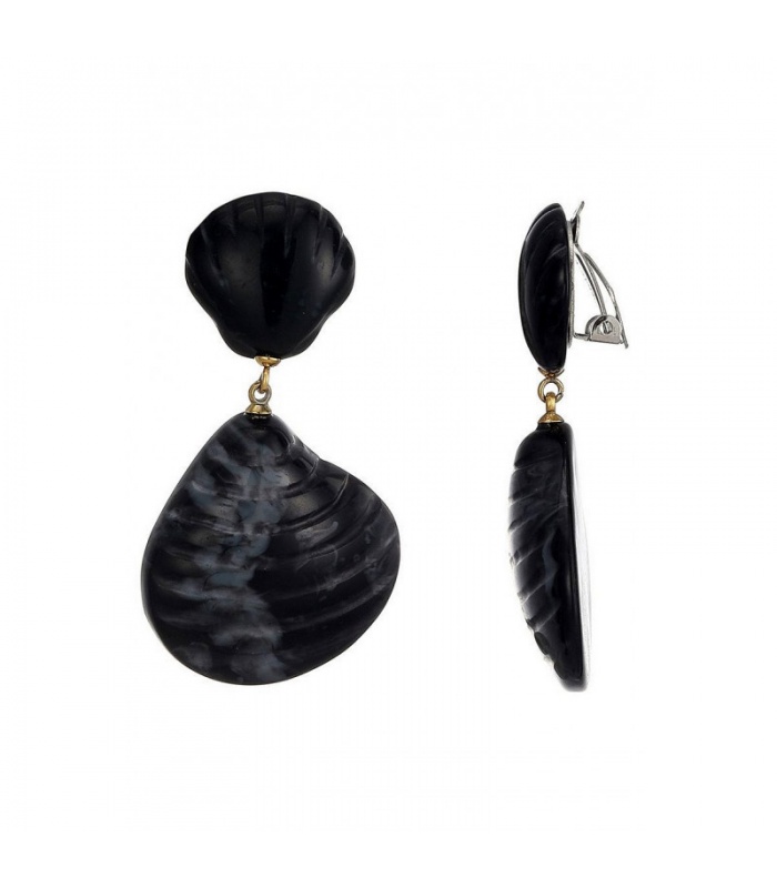 Deze elegante oorclips combineren een diepzwarte kleur met een verfijnd schelpenmotief, vervaardigd uit hoogwaardig hars. Het unieke ontwerp voegt een vleugje natuurlijke schoonheid toe aan elke outfit, perfect voor zowel casual als formele gelegenheden.