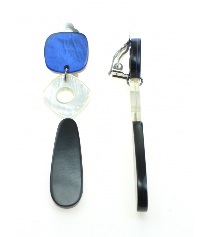Maak een fashion statement met de zwarte met crème oorclips en blauw oorstukje van Culture Mix. Bestel