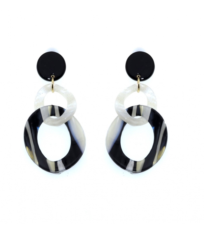 Zwart met witte oorclips 1 van de hangers heeft een motief