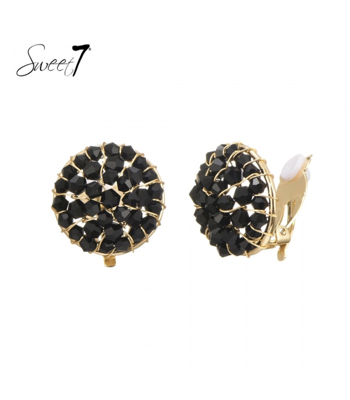 Hoe geef je je look een stijlvol tintje zonder gaatjes in je oren? Met deze stijlvolle oorclips van Sweet7. De zwarte facetkraaltjes zijn elegant verwerkt in een ronde goudkleurige structuur. Tijdloos en toch modern, perfect voor een chique avond of zakelijke outfit.