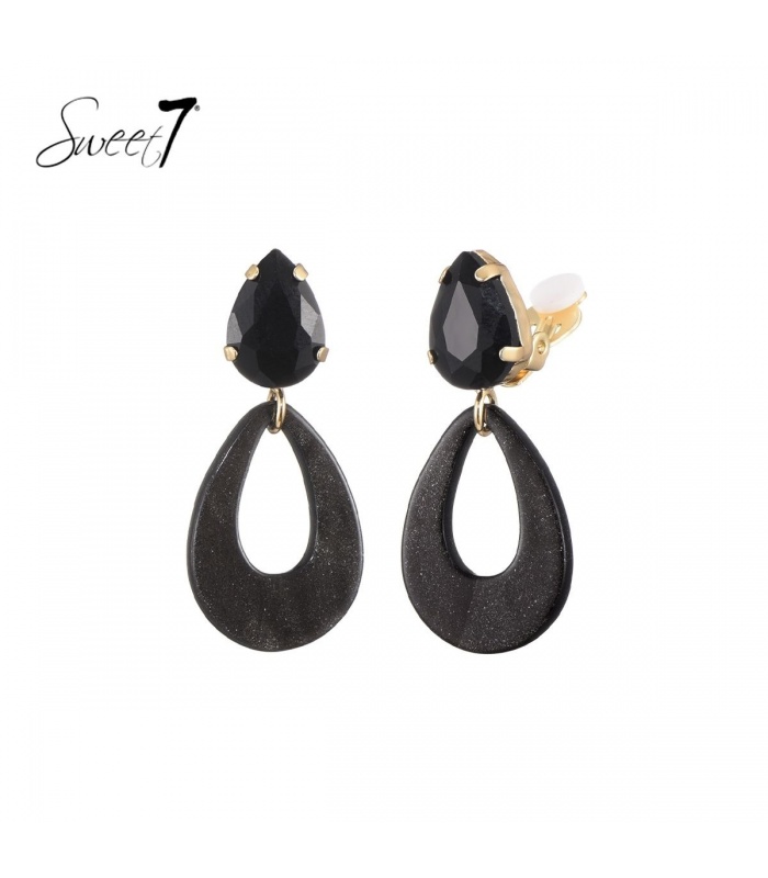 Wil je elegantie zonder gaatjes? Deze oorclips combineren een zwarte druppelsteen met een glanzend zwarte hanger in marmerlook. Ideaal voor een avondje uit of een zakelijke gelegenheid.
