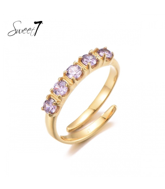 Goudkleurige ring met paarse zirconia steentjes