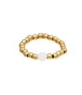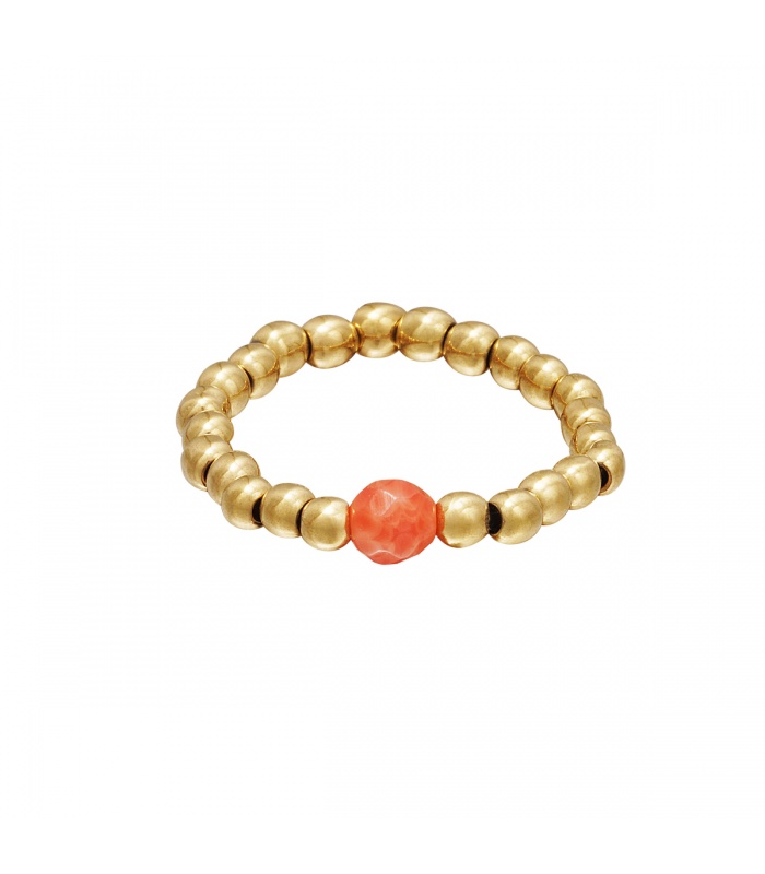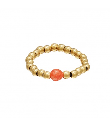 Teenring met goudkleurige kralen en ronde oranje steen.