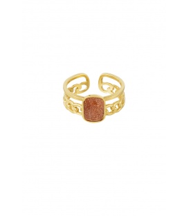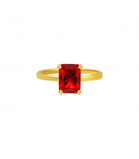 Goudkleurige ring met een rode natuursteen. De ring heeft 1 maat