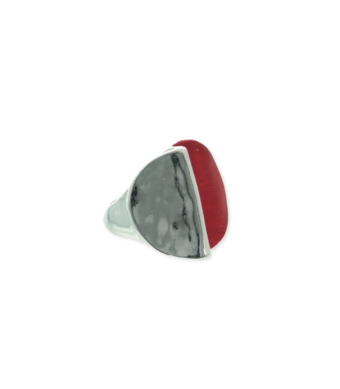 Mooie A-Zone ring van metaal met blauw en zilverkleurige deel