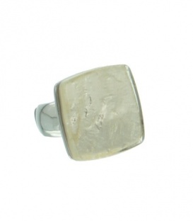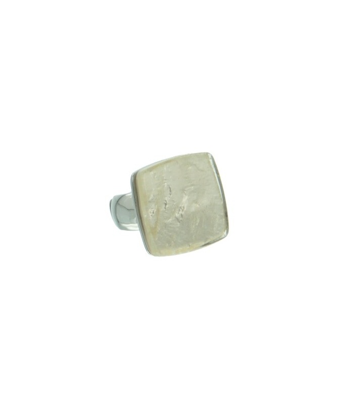 Witte flexibele ring van metaal met vierhoekige steen