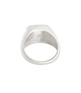 Zilverkleurige zegelring (16). De ring is gemaakt van stainless steel. Maat 16. De ring is van het merk Yehwang.