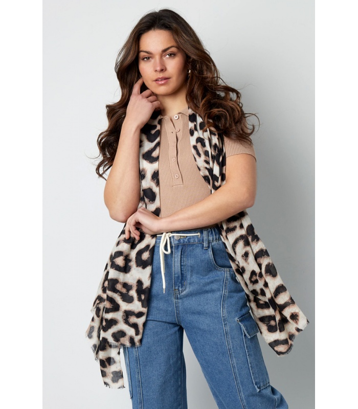 Een sjaal met print in camel kleur biedt een tijdloze en chique uitstraling. De neutrale tint maakt het eenvoudig te combineren met verschillende kleuren en stijlen. Bovendien zorgt de print voor een speels element, waardoor je outfit net dat beetje extra krijgt.