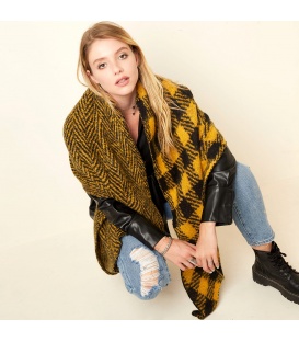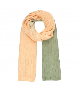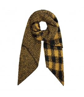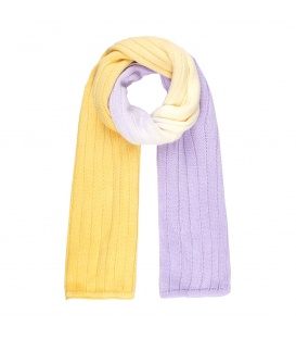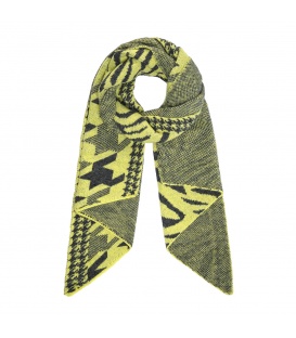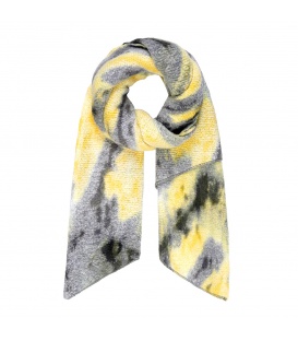 Geel gekleurde winter sjaal. De afmeting van de sjaal is 180 cm bij 50 cm. De sjaal is gemaakt van 44% Acryl, 25% Nylon, 31% Polyester.