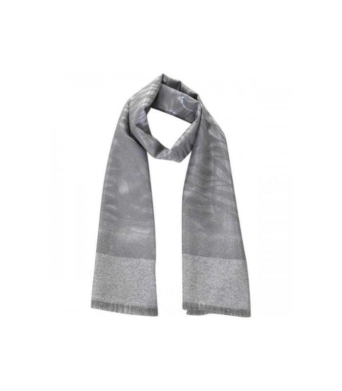 Grijze sjaal met glansdraad en print
