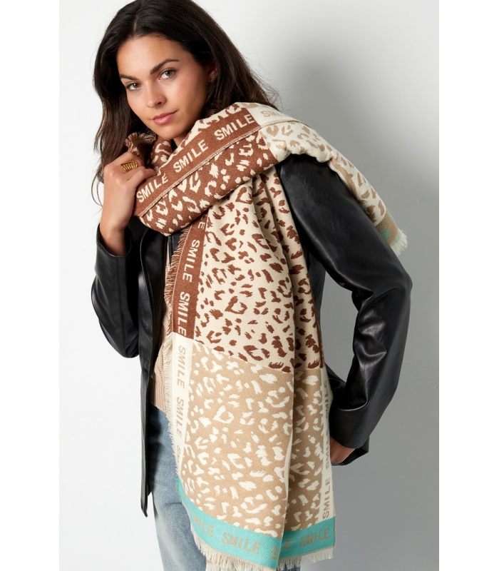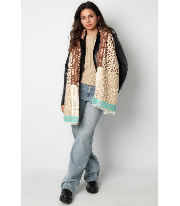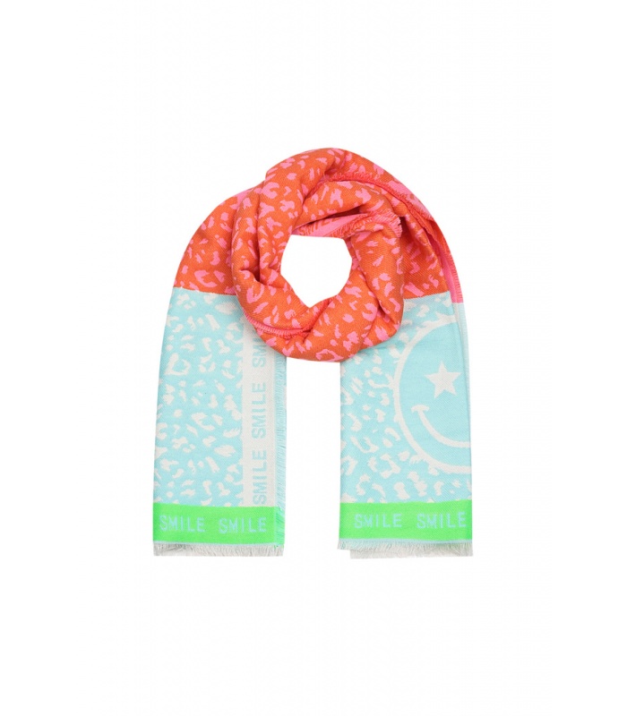 Deze kleurrijke winter sjaal met vrolijke smileyprints is een perfecte keuze voor koude dagen. Het opvallende design zorgt voor een speelse uitstraling en maakt elke winteroutfit net wat vrolijker. De sjaal is gemaakt van zachte, warme materialen die comfortabel aanvoelen en je goed beschermen tegen de kou.