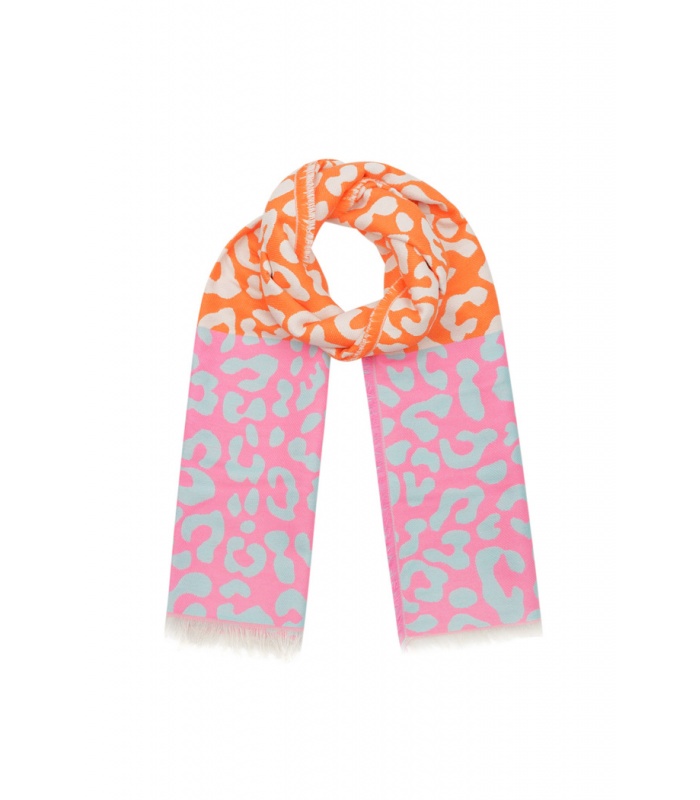 Trendy oranje met roze wintersjaal met speelse print.