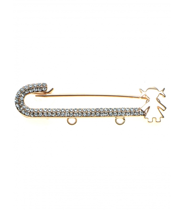 Roségold sjaalspeld met meisje en heldere strass steentjes.
